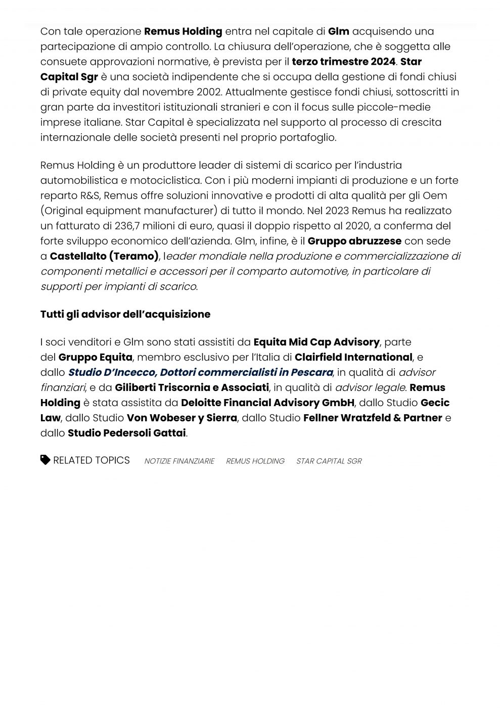 Automotive. Remus Holding acquisisce la maggioranza di Glm