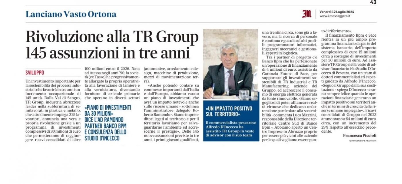 RIVOLUZIONE ALLA TR GROUP – 145 ASSUNZIONI IN 3 ANNI