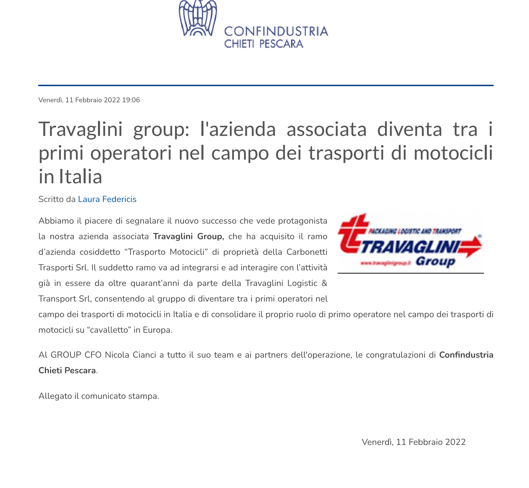 Travaglini group: l’azienda associata diventa tra i primi operatori nel campo dei trasporti di motocicli in Italia