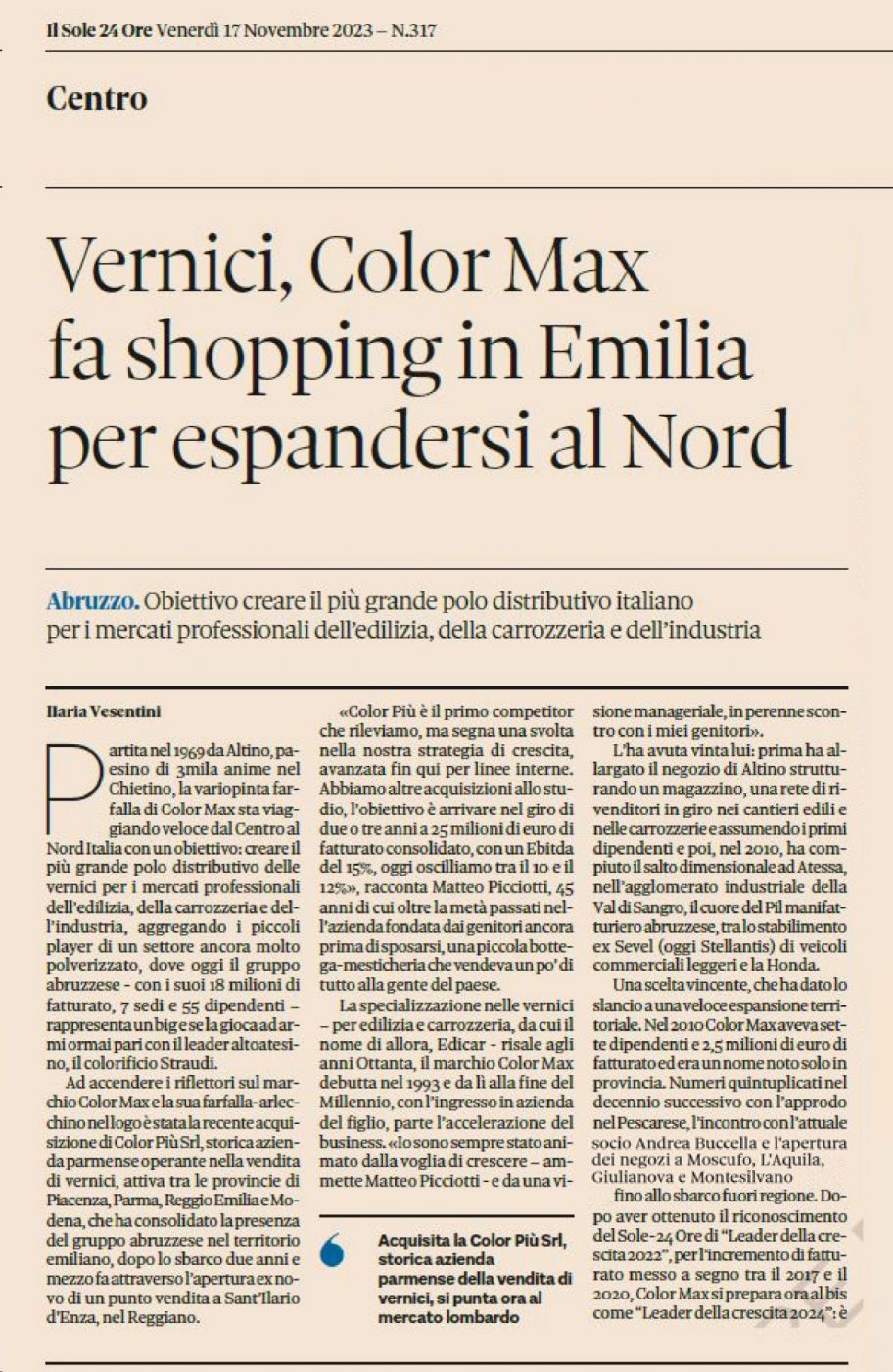 VERNICI, COLOR MAX FA SHOPPING IN EMILIA PER ESPANDERSI AL NORD